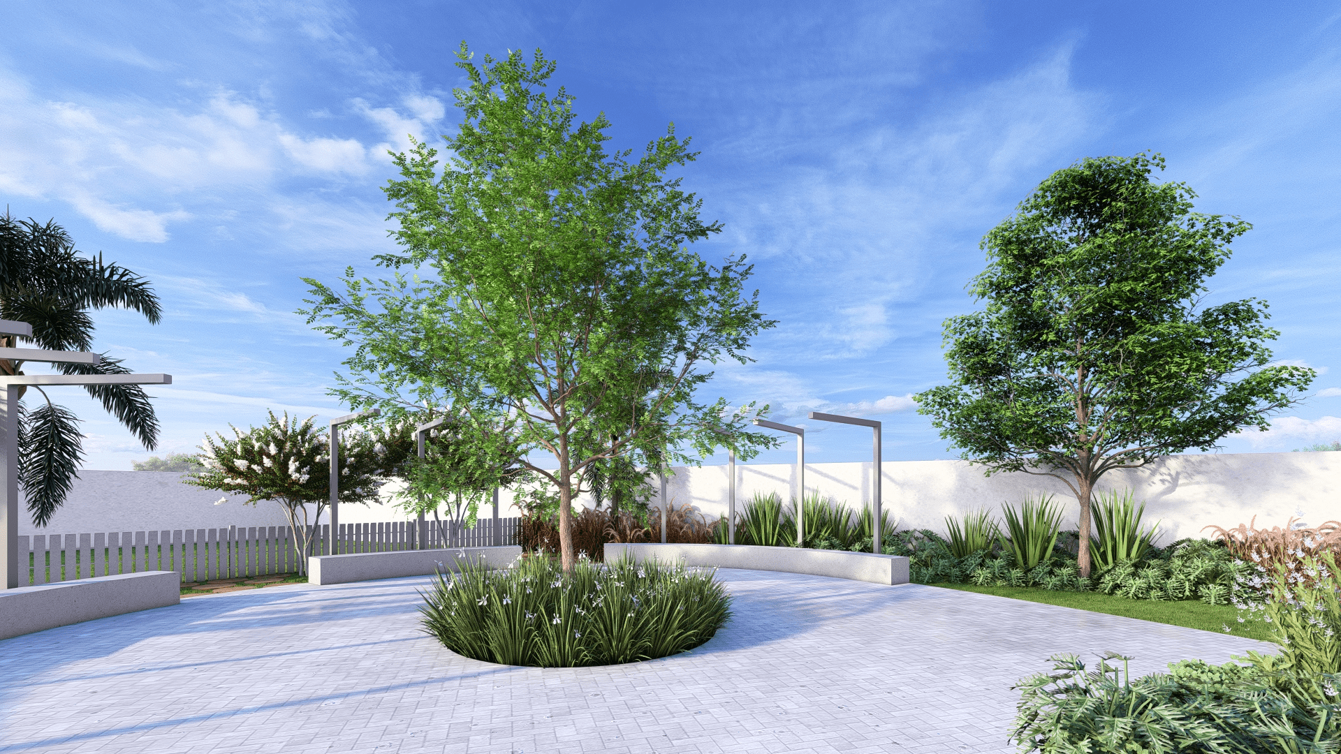 O design paisagístico foi meticulosamente planejado para criar cri um ambiente sofisticado e acolhedor, combinando elementos tropicais e clássicos que complementam a arquitetura e o ambiente do condomínio.