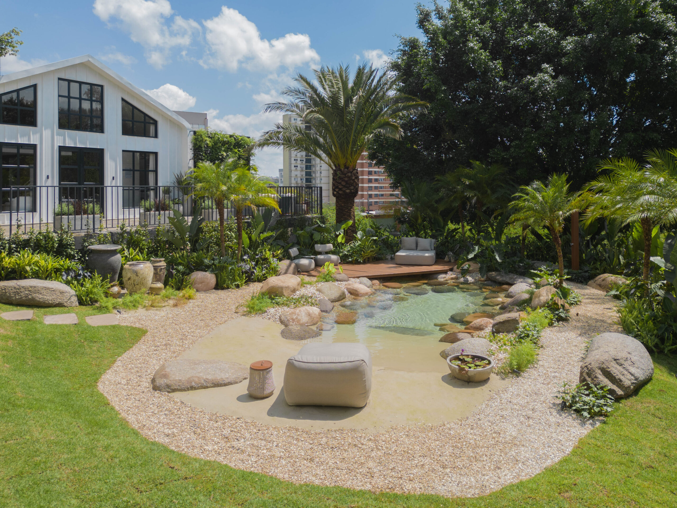 A intenção é revelar um espaço que inspire serenidade e vitalidade ao mesmo tempo, despertando a sensação de acolhimento em cada detalhe. O jardim se transforma em cenário de experiências, onde o tempo desacelera, a harmonia se torna palpável e o cotidiano ganha novos significados.